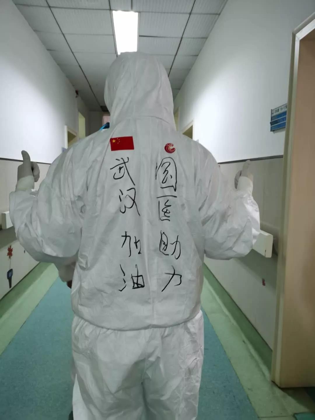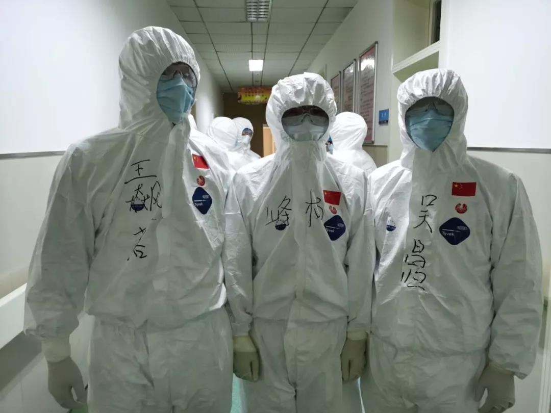培訓(xùn)后的隊(duì)員開(kāi)始穿戴防護(hù)服,由于身著防護(hù)服,看不清彼此的面容,醫(yī)護(hù)人員在防護(hù)服上背后寫(xiě)上自己的姓名,一個(gè)個(gè)化身暖心“大白”,彼此加油打氣,“武漢加油、國(guó)醫(yī)加油!”一字一句鼓舞人心,充滿(mǎn)力量。面對(duì)疫情和種種未知的風(fēng)險(xiǎn),西安國(guó)際醫(yī)學(xué)中心醫(yī)院醫(yī)療隊(duì)隊(duì)員主動(dòng)請(qǐng)纓,勇于上前,他們是最美逆行者!