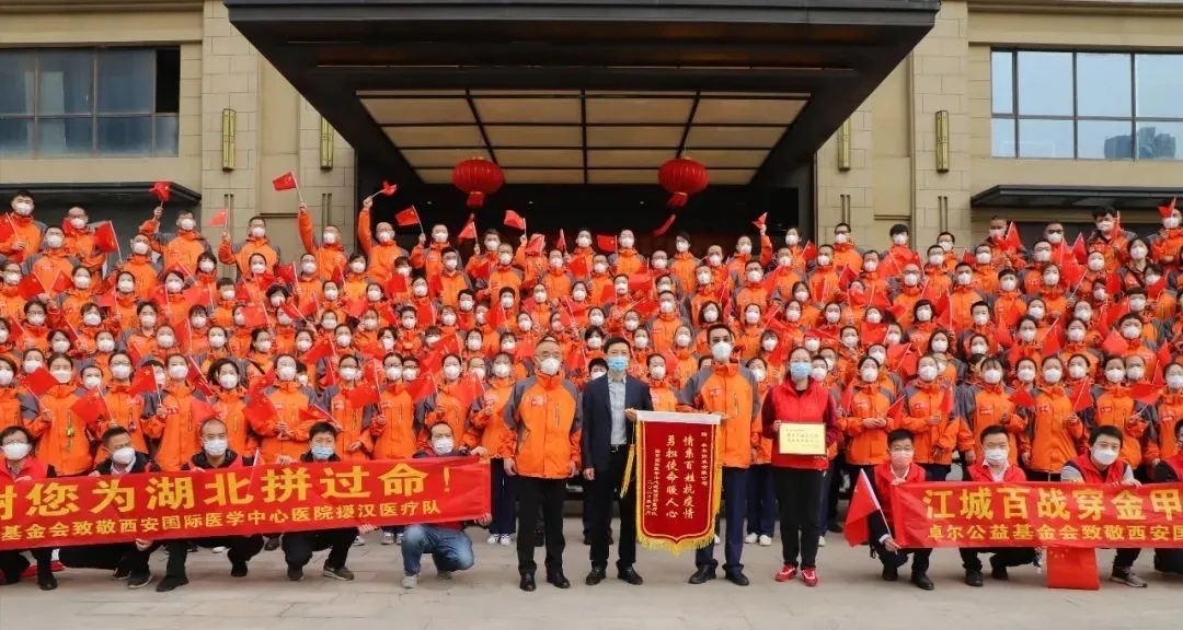 2月3日,在湖北武漢疫情嚴峻,一床難求的時刻,應卓爾公益基金會邀請,西安援漢醫(yī)療隊首批212名專家及醫(yī)護人員抵漢,火線投入卓爾長江應急醫(yī)院(武漢市第八醫(yī)院)的患者救治中,接管2個重癥病區(qū)、4個普通病區(qū)。第二批16名專家隨后抵漢增援,共228名白衣戰(zhàn)士經(jīng)過一個多月的持續(xù)奮戰(zhàn),累計收治新冠患者330人,極大緩解武漢市江岸區(qū)患者收治壓力,取得救治工作的重大勝利。診療結(jié)束后,又轉(zhuǎn)戰(zhàn)卓爾康復驛站,擔負500多名康復人員的診療護理工作。其間,援漢醫(yī)療隊派出60人的醫(yī)護工作團隊馳援卓爾隨州應急醫(yī)院,救治患者146名,圓滿完成了艱巨的診療救治任務。