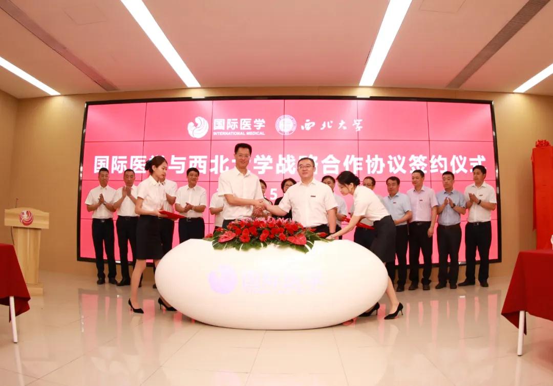 5月24日上午,國(guó)際醫(yī)學(xué)與西北大學(xué)戰(zhàn)略合作協(xié)議簽署暨西北大學(xué)附屬醫(yī)院授牌及揭牌儀式在西安國(guó)際醫(yī)學(xué)中心融媒體中心熱烈舉行。陜西省衛(wèi)健委主任劉寶琴、西北大學(xué)黨委書記王亞杰、黨委常委、副校長(zhǎng)常江、生命科學(xué)與醫(yī)學(xué)部教授趙鋼;國(guó)際醫(yī)學(xué)實(shí)際控制人劉建申、董事長(zhǎng)史今、黨委書記、總裁劉瑞軒等領(lǐng)導(dǎo)出席儀式。劉瑞軒總裁主持儀式。