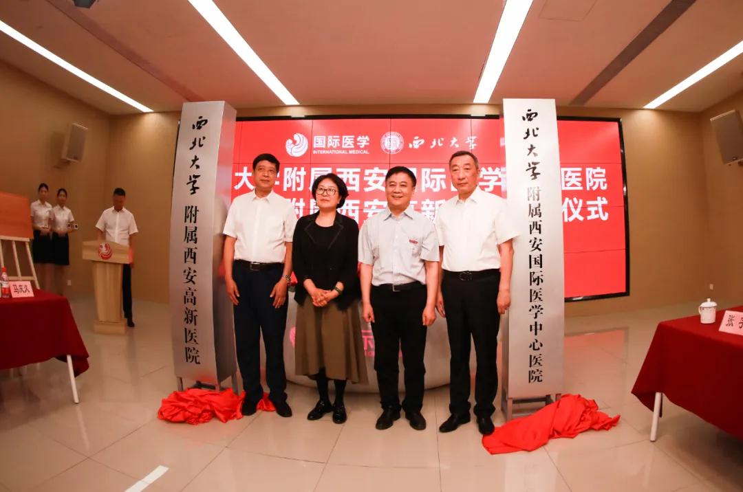 最后,在嘉賓們共同見證下,西北大學(xué)附屬西安國(guó)際醫(yī)學(xué)中心醫(yī)院、西北大學(xué)附屬西安高新醫(yī)院正式揭牌,會(huì)場(chǎng)響起熱烈掌聲。