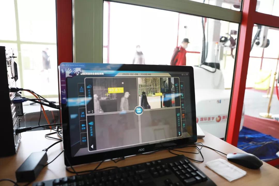 西安國際醫(yī)學中心醫(yī)院在三個主要通道均設(shè)立體溫檢測點,逢人必檢、逢疑必核。當被測目標在紅外鏡頭探測器鏡頭8米內(nèi)快速經(jīng)過時,儀器在1秒鐘內(nèi)便可顯示人體熱圖像和最高體溫標度。若被檢測者體溫異常,該系統(tǒng)便立即報警并拍攝體溫異常者圖像。