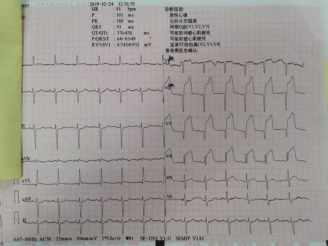 24日,今年已101歲的高齡的患者楊某,3小時前因突發(fā)胸悶胸痛、氣短、出汗,癥狀持續(xù)不緩解,被送至西安市某醫(yī)院,根據(jù)心電圖機心損標記物的結(jié)果,明確診斷為急性前壁心肌梗死。因需急診介入治療,被緊急送往西安國際醫(yī)學(xué)中心醫(yī)院救治。心臟內(nèi)科接診后,立即啟動綠色通道,對患者進行相關(guān)檢查后再次明確了診斷。