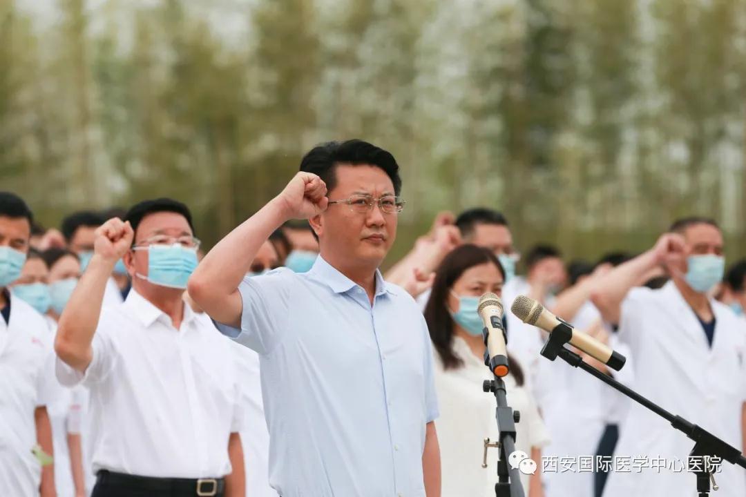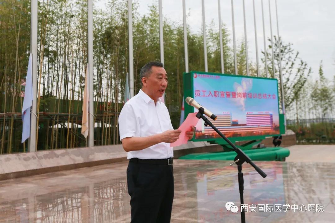 8月3日,西安國際醫(yī)學中心醫(yī)院舉行新員工入職宣誓暨崗前培訓總結(jié)儀式。尹強院長、王志峰總經(jīng)理、楊峰副院長、李武平副院長、張斌副院長、財務總監(jiān)王亞星等領(lǐng)導出席,232名新入職員工參加。入職儀式由楊峰副院長主持。