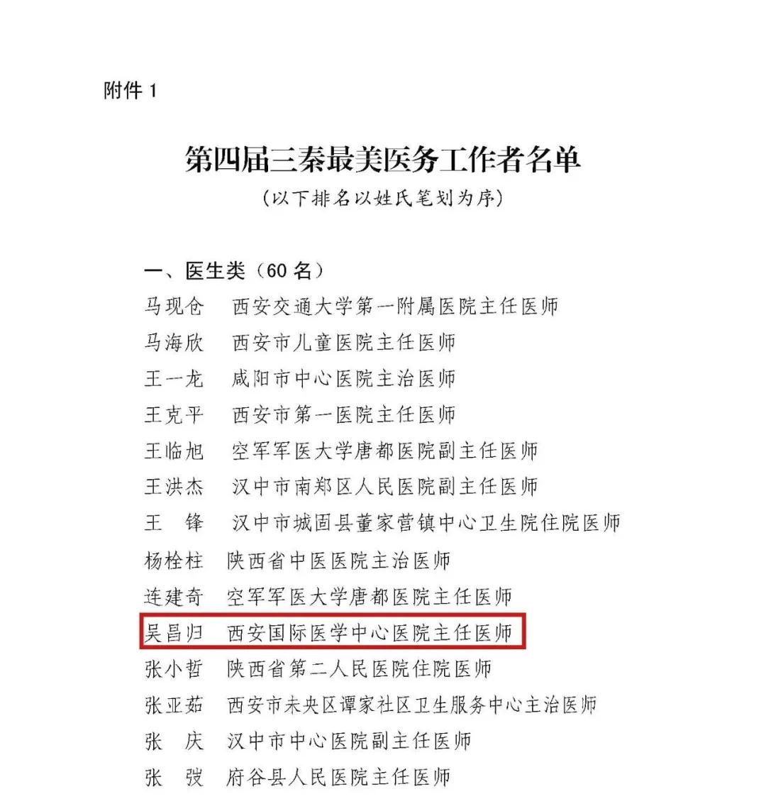 日前,陜西省衛(wèi)健委授予西安國際醫(yī)學中心醫(yī)院胸科醫(yī)院吳昌歸院長“第四屆三秦最美醫(yī)務工作者”榮譽稱號。