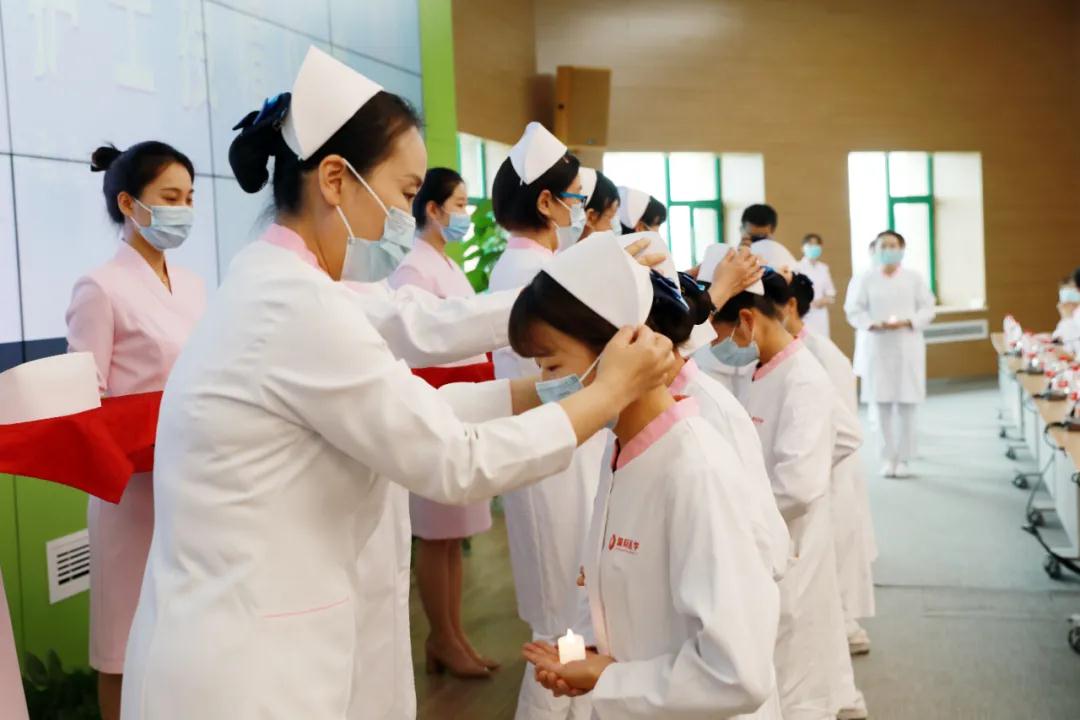 會上,李武平副院長宣讀《關于十佳護士及優(yōu)秀護士的表彰決定》。熠熠燭光中,院領導為50名新護士代表授帽?!坝嘀斠灾琳\,終身純潔,忠貞職守……?”在張敏主任的引領下,新護士們重溫南丁格爾誓詞。
