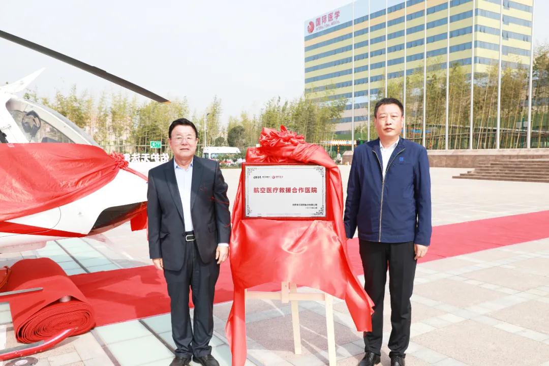 王志峰總經(jīng)理、郝幫華書記為“航空醫(yī)療救援”項(xiàng)目正式啟動(dòng)進(jìn)行合作簽約并揭牌。