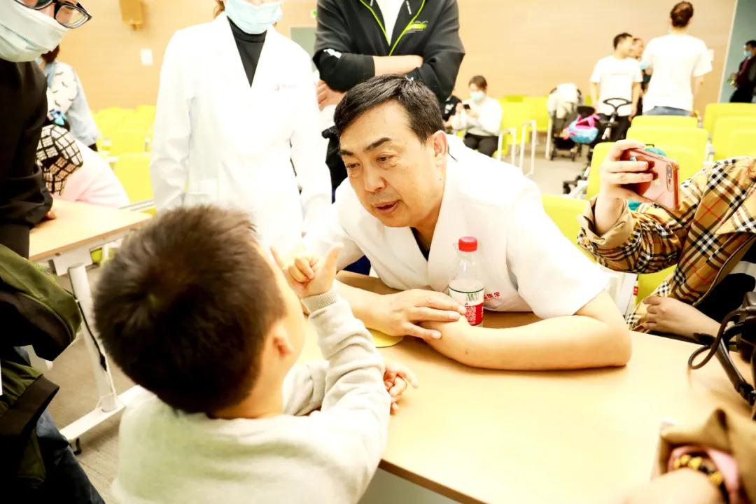 科普講座結(jié)束后,郭樹忠教授和武瑾醫(yī)生分別為小耳患者們進(jìn)行一對一的面診。小耳患者及家屬有序面診,活動現(xiàn)場井然有序。小耳癥孩子的爸爸媽媽們從帶著很多疑問而來,剛開始眉頭緊皺,聽了兩位專家的介紹,如釋重負(fù),了然于胸。