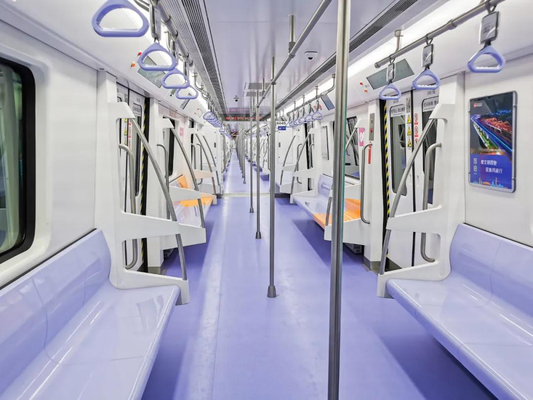 28日上午,小編乘坐開往西安國際醫(yī)學(xué)中心方向的6號線地鐵。該車車身腰線為一抹清新“星空藍(lán)”,車內(nèi)裝飾為點點淡雅“香芋紫”;車門上方的LCD顯示屏,既有整體線路、運(yùn)行狀態(tài)等基本信息,也有列車抵達(dá)下一站的預(yù)計時間,更有站臺層扶梯、直梯與洗手間的位置等便民信息;橙黃色的愛心座椅自帶加熱功能,科技感十足,有顏值,更便捷!