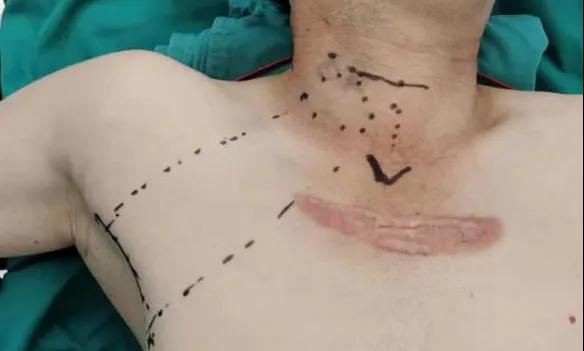 甲乳外科醫(yī)生在與邢先生的交談中得知,他為瘢痕體質(zhì),胸部有一較大的明顯瘢痕。瘢痕體質(zhì)是一種特殊體質(zhì),表現(xiàn)為身體任何部位受損愈合后,可出現(xiàn)明顯大于原創(chuàng)口或持續(xù)增大的瘢痕。邢先生因瘢痕苦惱多時,嘗試多種治療手段均無明顯效果,為其生活帶來諸多不便。