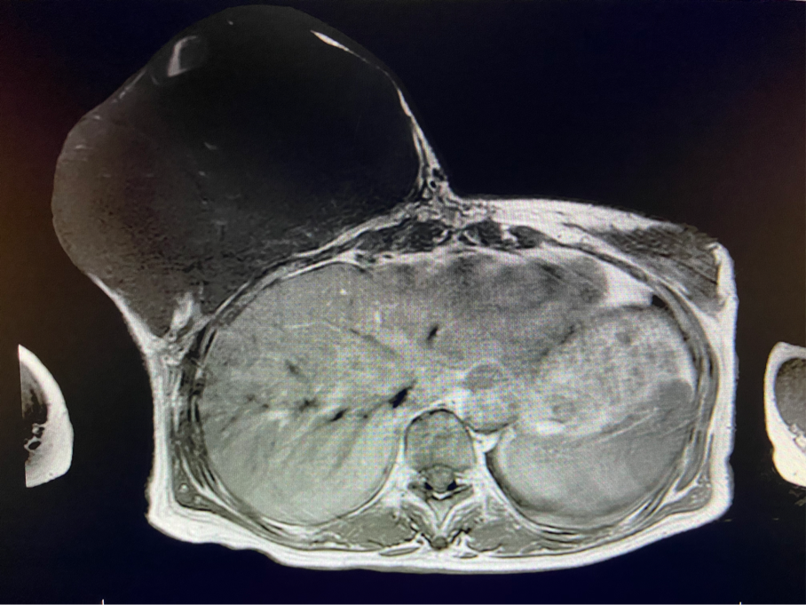 該患者右乳巨大腫物術(shù)前初步考慮乳腺葉狀腫瘤可能,因腫瘤太大,幾乎遍及整個右側(cè)乳房,為保證“無瘤原則”,術(shù)中切除范圍位置未知,極有可能出現(xiàn)皮瓣缺損。于是,經(jīng)過和整形醫(yī)院郭樹忠院長、整形外科王愛武主任的討論,提供了兩種手術(shù)方式,一是創(chuàng)面修復(fù)(植皮或轉(zhuǎn)移皮瓣修復(fù)創(chuàng)面),二是乳房再造,與患者及家屬溝通后,決定先解決腫物,3年病情不再復(fù)發(fā)后,可以再考慮乳房重建。