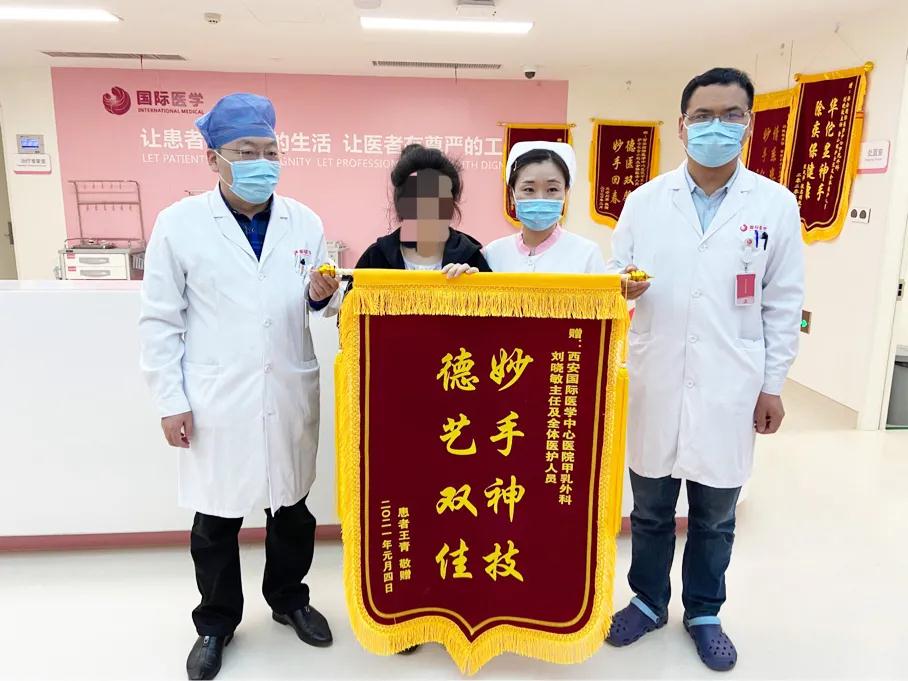 王女士終于可以暢快呼吸、正常走路了,不用再擔(dān)心壓在胸前令人窒息的腫瘤和別人異樣的眼光。近日,王女士在西安國際醫(yī)學(xué)中心醫(yī)院甲乳外科接受了右乳全乳切除術(shù) 胸壁皮瓣成形術(shù)或植皮術(shù),切除了胸口重達5斤的腫瘤。