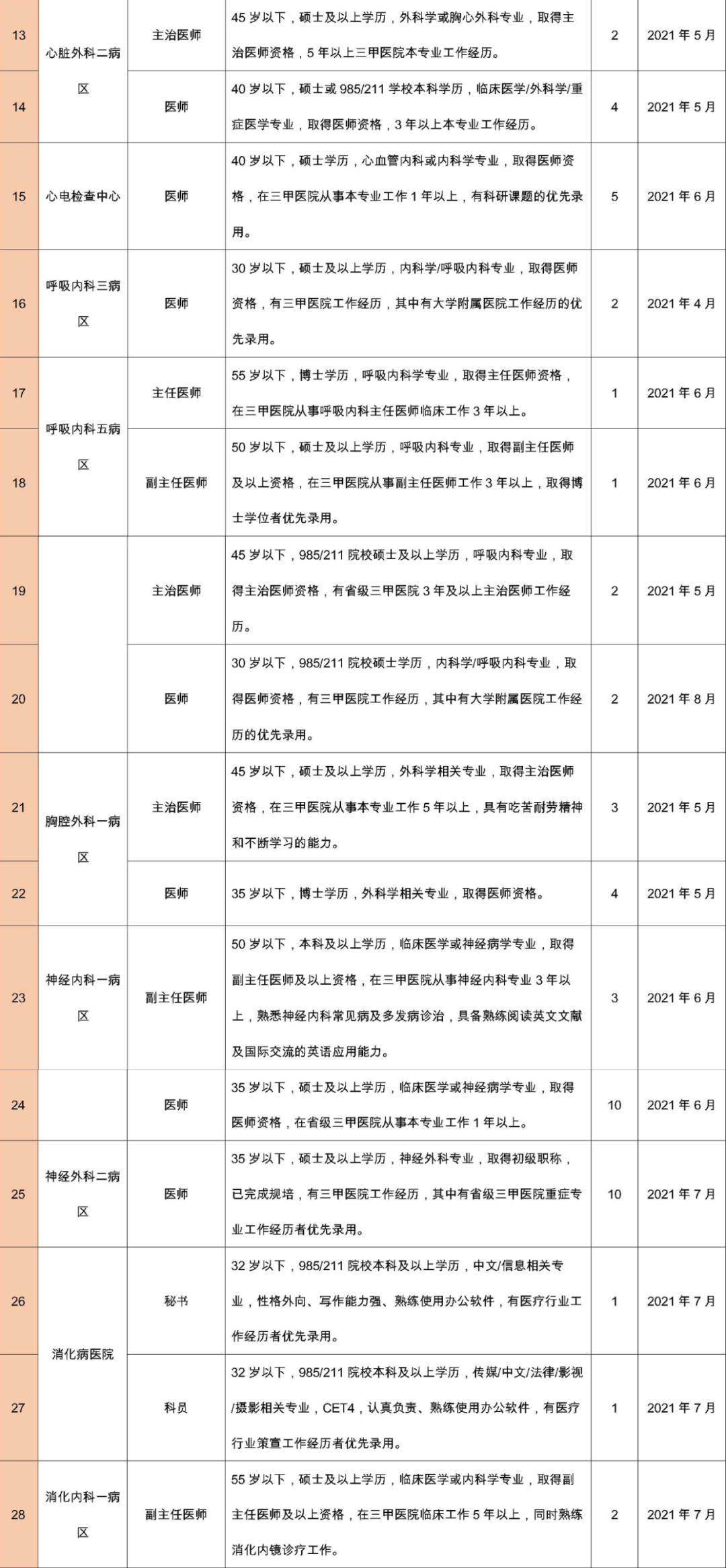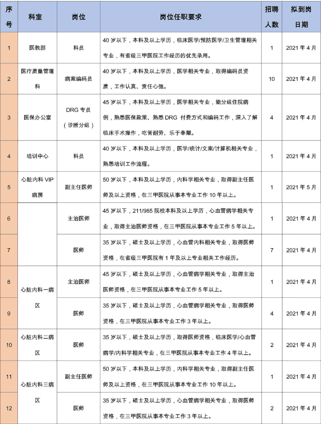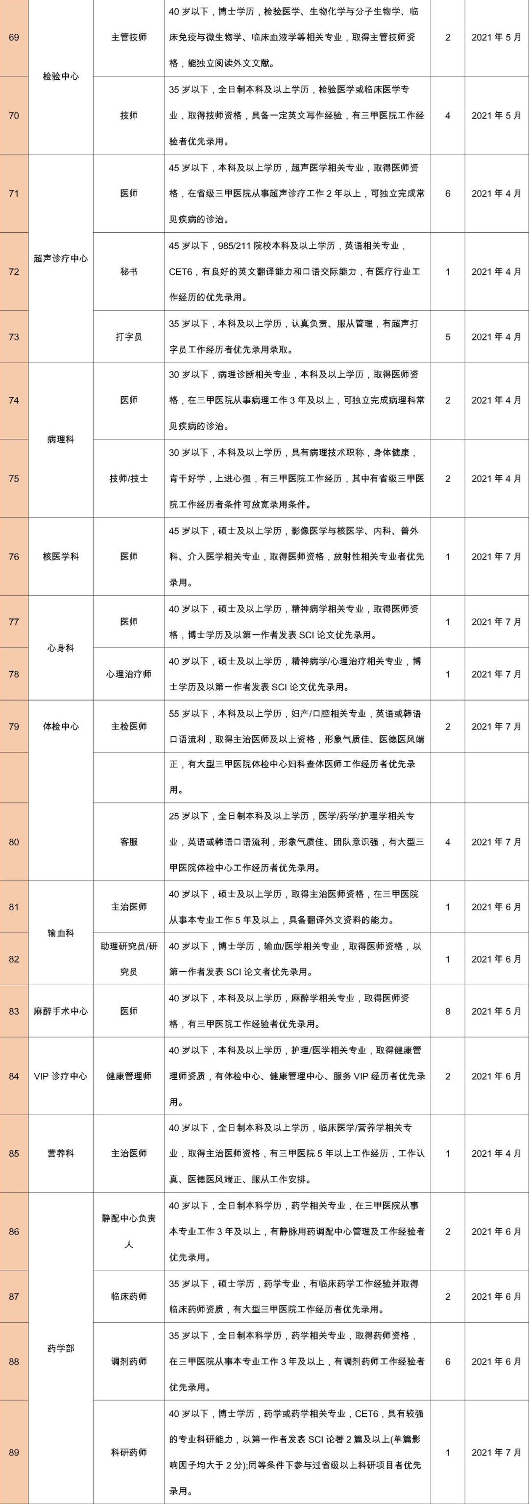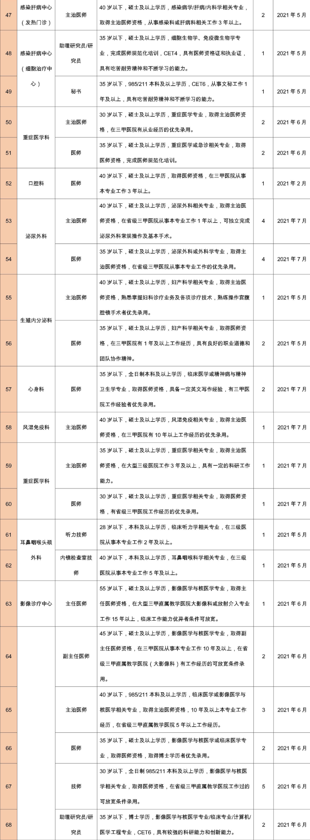 擁護(hù)黨的路線(xiàn)、方針、政策;遵守國(guó)家法律、法規(guī);熱愛(ài)本職工作,責(zé)任心強(qiáng),有良好的職業(yè)道德,認(rèn)同國(guó)際醫(yī)學(xué)價(jià)值理念,愿意投身醫(yī)療事業(yè);所學(xué)專(zhuān)業(yè)必須與應(yīng)聘崗位要求相符或必須具有相關(guān)從業(yè)經(jīng)歷。