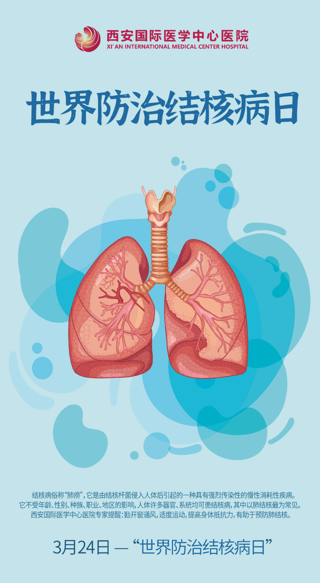 2021年3月24日是第26個(gè)世界防治結(jié)核病日,今年我國(guó)的宣傳主題是:“終結(jié)結(jié)核流行、自由健康呼吸”。作為呼吸道傳染病,肺結(jié)核究竟是什么?對(duì)我們的身體有哪些危害?今天,預(yù)防保健科閆蓓醫(yī)生為大家介紹相關(guān)知識(shí)。