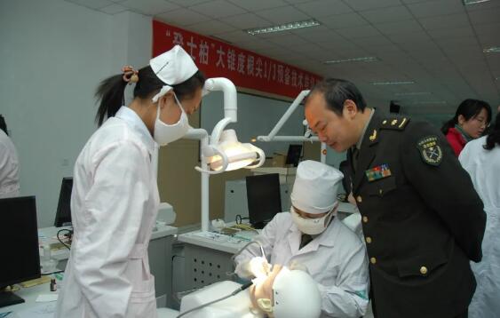 談到這點(diǎn),倪龍興笑稱是因?yàn)椤胺涓C爐”。當(dāng)年被第四軍醫(yī)大學(xué)軍醫(yī)系錄取后,學(xué)校派往上海統(tǒng)一接受錄取考生的隊(duì)長(zhǎng)和指導(dǎo)員,在離開(kāi)上海前一天受同事委托,要買(mǎi)幾個(gè)蜂窩爐回西安。倪龍興家住浦東,要到浦西的集合點(diǎn),需要提前一天到,看到他們攜帶六七個(gè)蜂窩爐及其他隨行物品,不由分說(shuō)幫著搬運(yùn)行李,農(nóng)村孩子特有的樸實(shí)給他們留下了深刻的印象。在開(kāi)往西安的火車(chē)上,隊(duì)長(zhǎng)和指導(dǎo)員找到倪龍興,告訴他口腔系有一位錄取考生沒(méi)有來(lái)報(bào)到,問(wèn)他愿不愿意加入口腔系。“那時(shí)候?qū)?zhuān)業(yè)沒(méi)什么概念,都是當(dāng)兵唄,學(xué)什么都行?!比胄2痪茫啐埮d就發(fā)現(xiàn)口腔系的“慘淡待遇”:“你們口腔???有什么難學(xué)的,一口牙就二三十顆,一天學(xué)一顆一個(gè)月就搞定了!”倪龍興經(jīng)常會(huì)被其它系的學(xué)員調(diào)侃?!跋敕瘩g吧,還不知道說(shuō)什么。因?yàn)槁?tīng)著好像也就是那么回事?!笨谇徊皇苤匾暿悄啐埮d當(dāng)時(shí)的感覺(jué)。