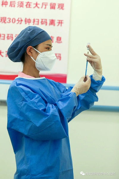 掃碼,拆開包裝,取出疫苗,拿出一次性針頭,扎進(jìn)瓶中,抽出液體,注射到接種對(duì)象胳膊上……今天的這位接種者,是西安國(guó)際醫(yī)學(xué)中心醫(yī)院護(hù)士楊婕接種的第13230人。