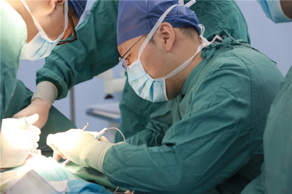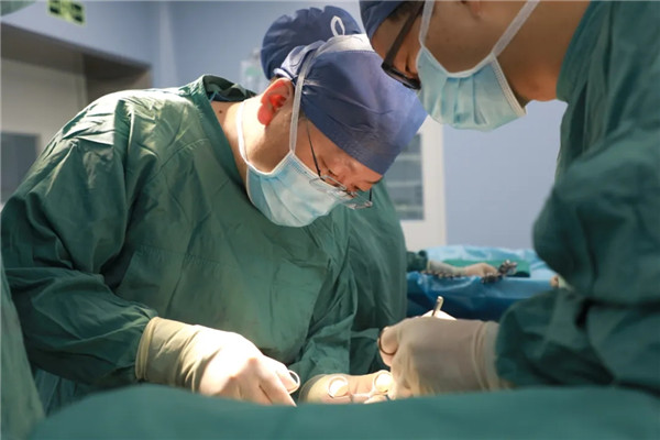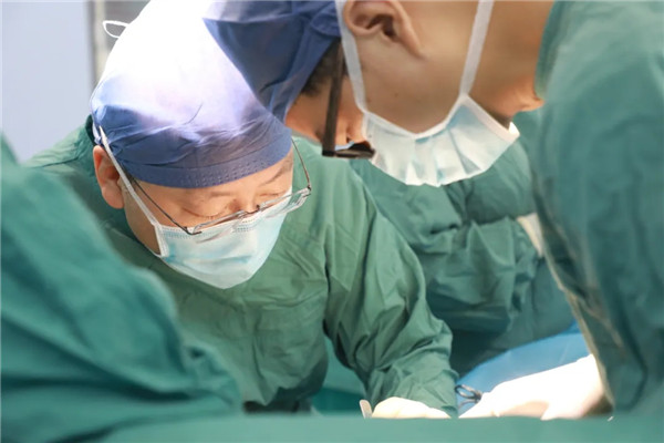 做好了充分準(zhǔn)備與預(yù)案,手術(shù)臺(tái)前的劉曉敏鎮(zhèn)定專注,在分離切斷王金花的甲狀腺懸韌帶后,他抽絲剝繭,一根根處理甲狀腺上極血管,繼而結(jié)扎切斷甲狀腺中、下的靜脈、動(dòng)脈,在由峽部切斷處起始分離甲狀腺背面時(shí),劉曉敏仔細(xì)辨認(rèn)喉返神經(jīng)和甲狀旁腺,確保不傷分毫。一般情況下,手術(shù)至此可以順利結(jié)束??赏踅鸹ㄊ俏焕淆g患者,由于氣管軟化,加上腫塊長久壓迫,氣管就像失去回彈力的彈簧,從醫(yī)學(xué)角度看,患者已可以治愈,短期也無生命大礙,可彈不起來的“彈簧”還會(huì)重新聚攏在一起,讓老太太喘不上氣。一次手術(shù)能解決的問題,絕不讓患者再受二茬罪,劉曉敏又對王金花實(shí)施氣管懸吊術(shù),把“癱瘓”了的氣管朝兩邊拉起,給氣管留出足夠的空間出氣。
