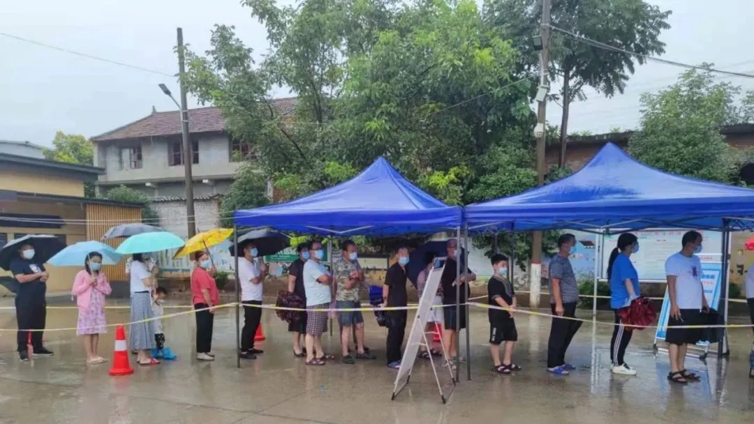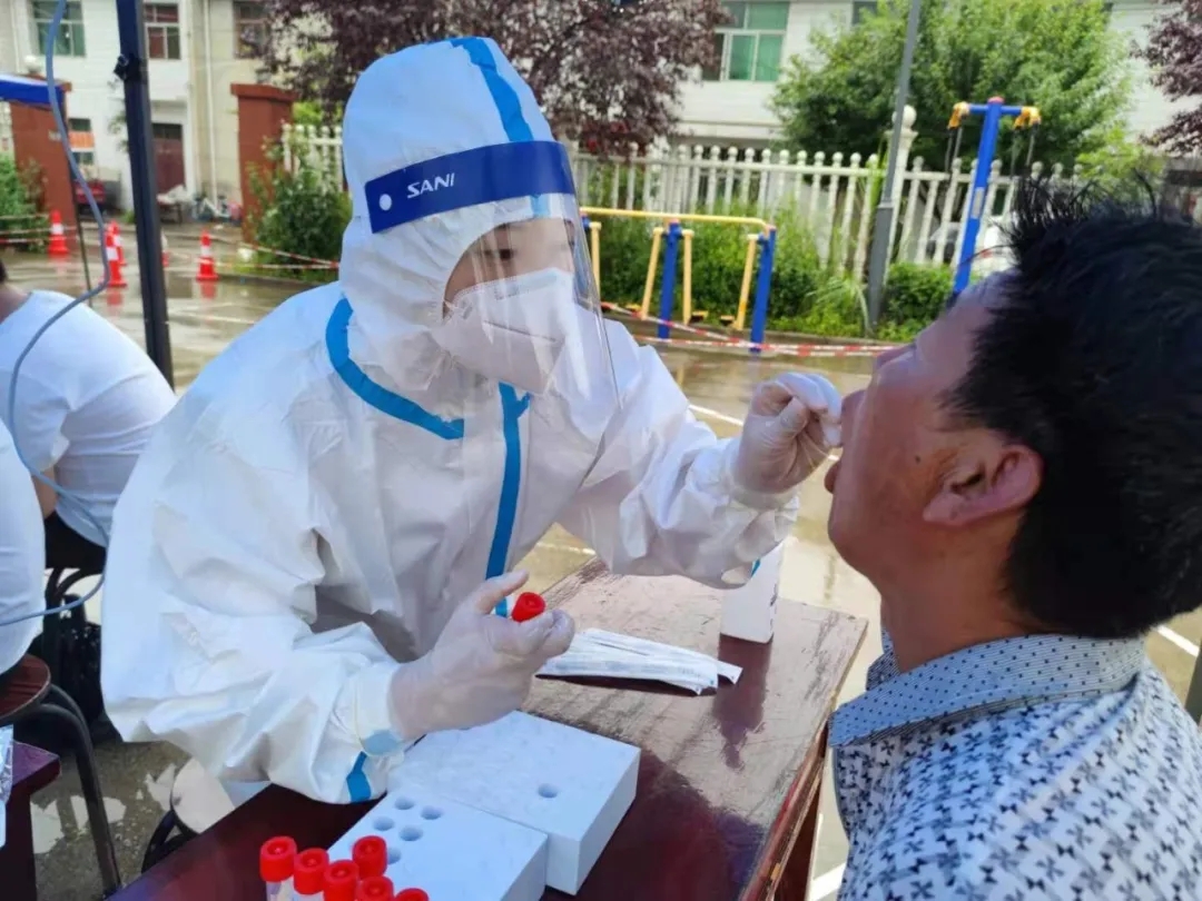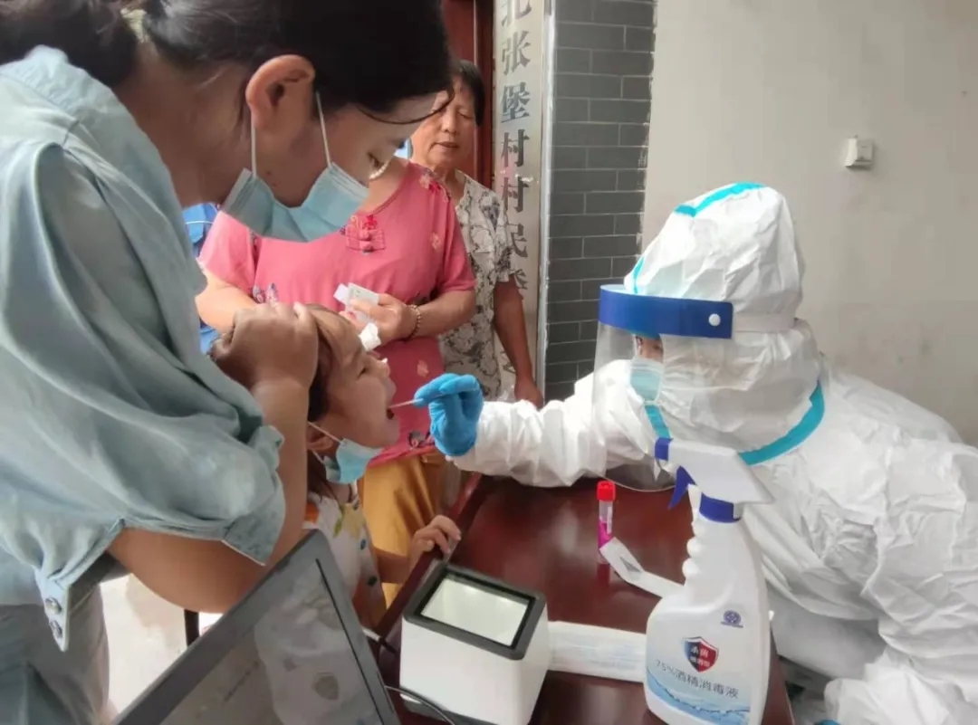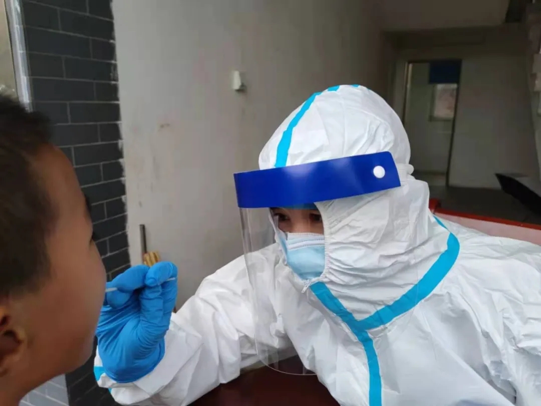風(fēng)雨交加的社區(qū)中,一幕幕溫情畫面也在上演。在五星街道北張堡村,郭小娟護(hù)士正在給五歲的小女孩做核酸檢測,做完后,小女孩的一聲:“謝謝阿姨!”讓她紅了眼眶。原來,這周她本要陪孩子好好過個周末,但周五接到集結(jié)通知,她毫不猶豫報了名,只好將三歲半的孩子交給父母照顧?!白蛲砘丶乙呀?jīng)十點了,孩子還在等我,問我熱不熱。雖然沒能在家陪他,但是能在核酸檢測點守護(hù)大家的健康,我覺得很自豪。”郭小娟說。