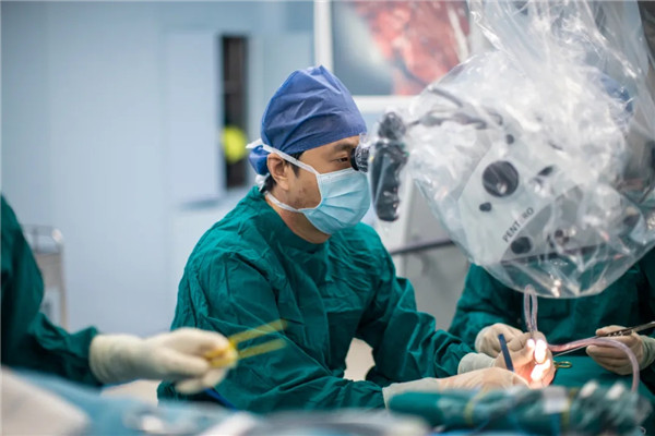白天做臨床,凌晨一兩點(diǎn)還在做科研?!斑x擇神外,就意味著放棄享福?!辟R世明說(shuō),從穿上白大褂的那一刻起,心中就埋藏下“把自己這百八十斤交給患者”的理念。因此,他時(shí)時(shí)刻刻都在全力以赴。除了跟著老師學(xué),就是自己下來(lái)練。平時(shí)繁忙的工作之余,賀世明和同事一起組織各種解剖、顯微、脊柱培訓(xùn)班,周末休息時(shí)間大家推上顯微鏡,準(zhǔn)備好器械學(xué)習(xí)解剖大腦,一練就是一整天。日積月累,賀世明對(duì)復(fù)雜的大腦結(jié)構(gòu)爛熟于心,建立起了手術(shù)所需的大局觀和立體感,快速提升著自己的業(yè)務(wù)能力。時(shí)至今日,他的辦公桌上還放著一個(gè)大腦模型,經(jīng)常用來(lái)給大眾進(jìn)行視頻科普。
