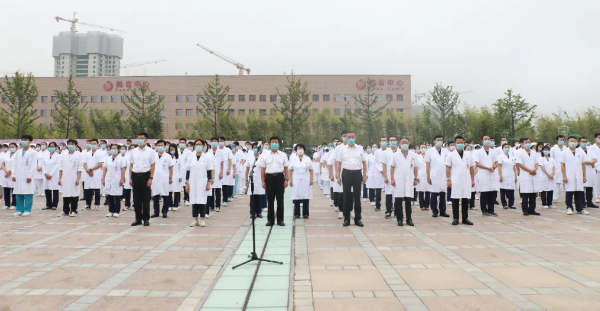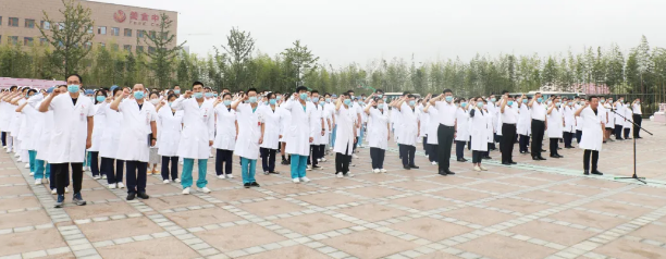 最后,劉延彤院長助理帶領(lǐng)全體新入職員工舉起右手,莊嚴(yán)宣誓,鏗鏘有力的誓言在萬人廣場久久回蕩。