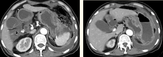 一籌莫展的她終于在病友的介紹下,來(lái)到西安國(guó)際醫(yī)學(xué)中心醫(yī)院找到蔡磊主任。經(jīng)過(guò)詢問(wèn)病史,查體等,蔡磊主任建議口服索坦治療。3個(gè)月后,李阿姨復(fù)查CT提示胃間質(zhì)瘤較前明顯縮小,大小約10.4cm?6cm。但仍存在消化道出血,營(yíng)養(yǎng)狀況差,全身無(wú)力,骨髓抑制。蔡磊主任隨即將患者收治入院。