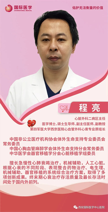 2011年,程亮公派前往德國柏林心臟中心學習機械輔助技術,即人工心臟。從德國回來后,程亮經過充分的前期準備,2015年科室正式開展機械輔助技術。