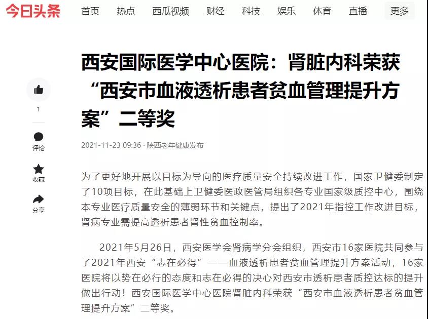 腎臟內(nèi)科榮獲“西安市血液透析患者貧血管理提升方案”二等獎(jiǎng)