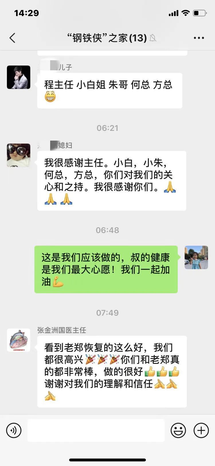 “他們專門為我建了一個(gè)‘鋼鐵俠之家’的微信群,我和張?jiān)洪L(zhǎng)還有科室的醫(yī)護(hù)人員都像家人一樣,我每天都會(huì)在群里發(fā)我的日常狀態(tài)、吃的藥量”,面色紅潤(rùn)的老鄭步履輕盈地走到駕駛座:“別說開車了,在這之前,我連路都走不了,現(xiàn)在我可以去接送孫子上下學(xué)?!?