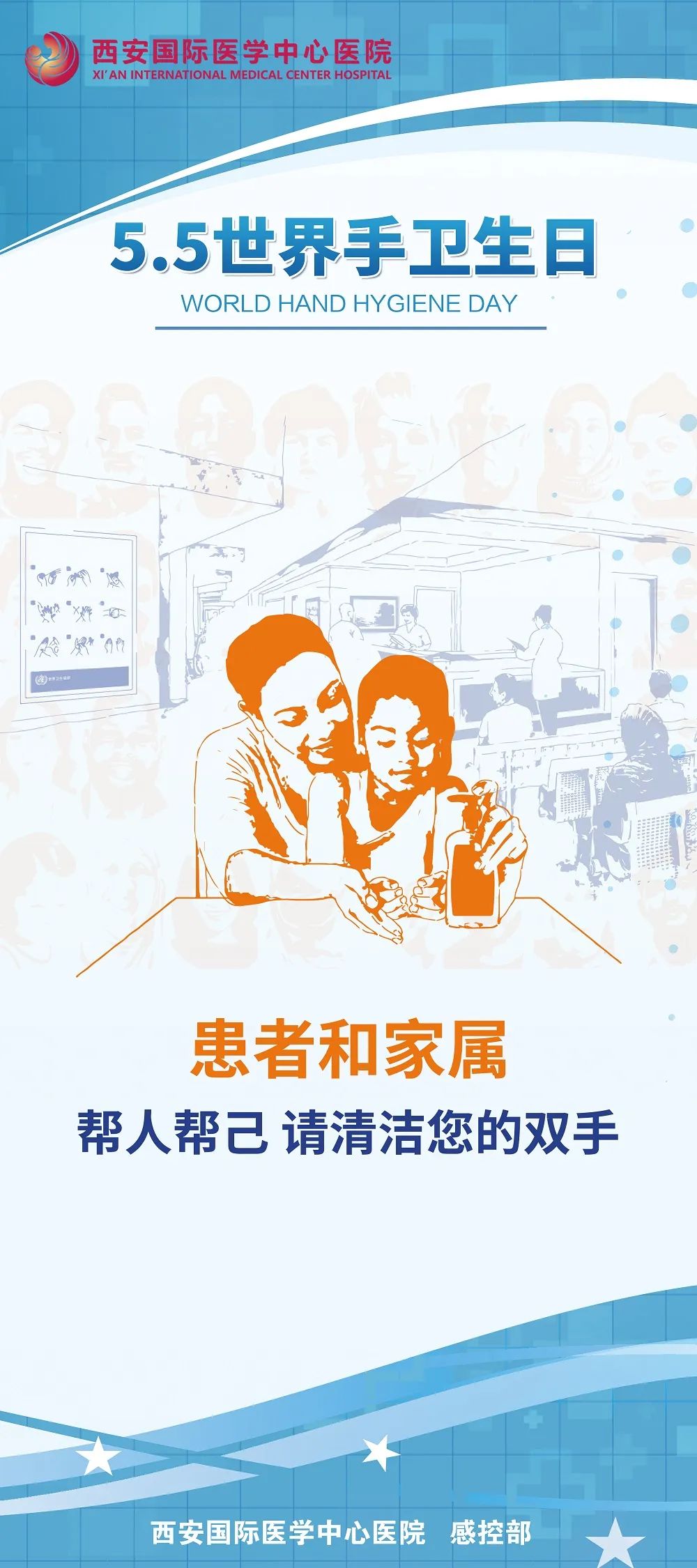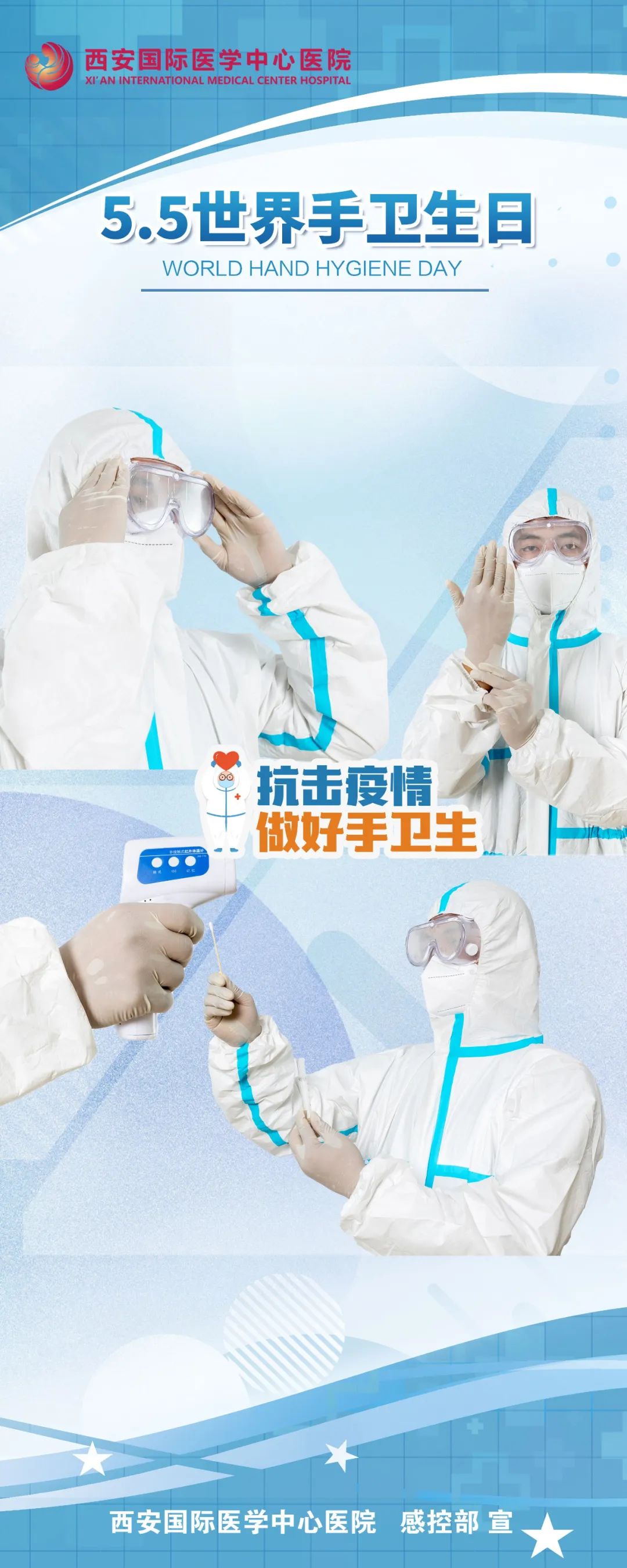 自2020年起,我院每年舉辦“手衛(wèi)生宣傳月”活動(dòng),迄今已舉辦三屆,今年,各??漆t(yī)院院長、副院長擔(dān)任“手衛(wèi)生形象大使”,其宣傳海報(bào)張貼在住院部和門診,營造了手衛(wèi)生從我做起,人人都是感控實(shí)踐者的良好氛圍。