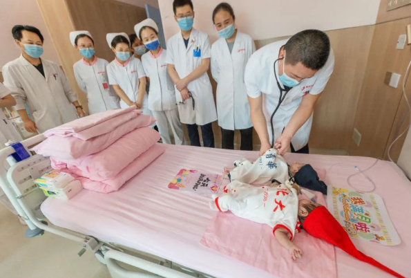 “樂樂、朵朵(均為化名)長大了上清華、北大……”西安國際醫(yī)學(xué)中心醫(yī)院心臟外科病房傳出陣陣歡笑,兩個(gè)剛滿月的寶寶分別身著“清華”、“北大”連體衣,并排躺在病床上,接受來自家人和醫(yī)護(hù)人員的祝福。