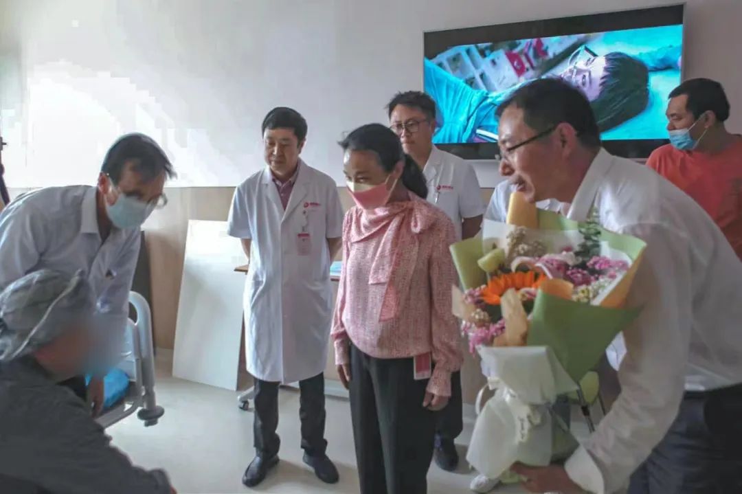 護(hù)士節(jié)前一日李女士出院時(shí),國(guó)際醫(yī)學(xué)副董事長(zhǎng)王愛(ài)萍、腦科醫(yī)院副院長(zhǎng)賀世明為她送上鮮花和救助金,希望她早日康復(fù),和抗疫中千千萬(wàn)萬(wàn)的白衣天使一樣,繼續(xù)發(fā)光發(fā)熱。