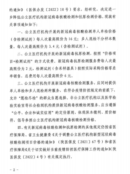 關(guān)于進(jìn)一步降低公立醫(yī)療機(jī)構(gòu)新冠病毒核酸檢測和抗原檢測價(jià)格的通知