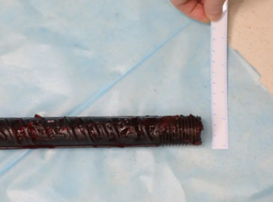 情況緊急!術(shù)中探查后發(fā)現(xiàn),長120cm直徑3cm的螺紋鋼經(jīng)患者右側(cè)會陰部穿入,傷及直腸,途徑膀胱后方,左側(cè)髂總動靜脈之間傷及左腎后,經(jīng)胰腺后方在肝脾之間穿破膈肌,在下肺靜脈前方穿入左肺穿破氣管及左右主支氣管膜部,止于主動脈弓下水平,穿入體內(nèi)的部分達(dá)到75cm。