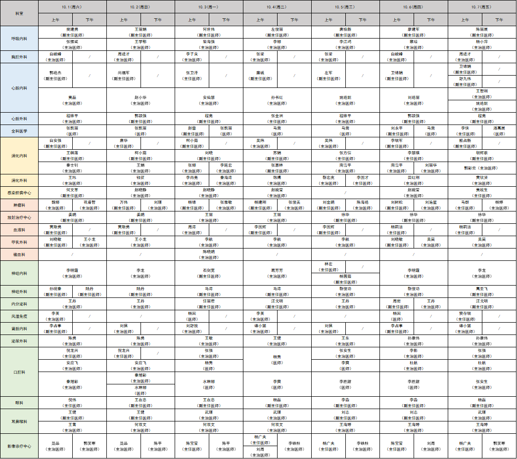 西安國(guó)際醫(yī)學(xué)中心醫(yī)院北院區(qū)門診出診表