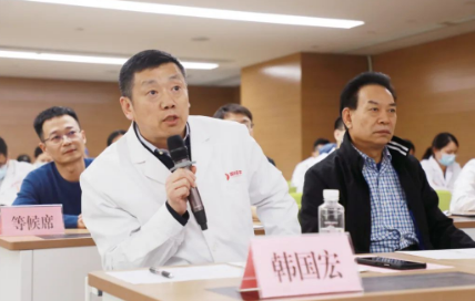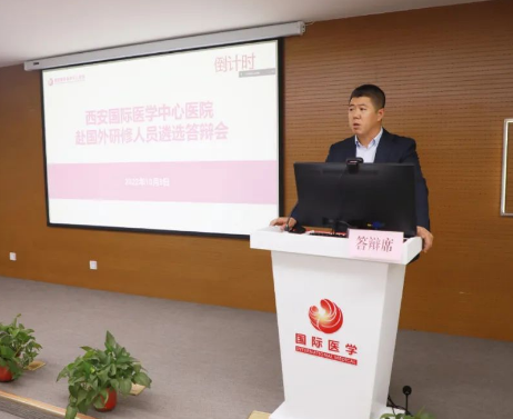 10月9日下午,我院舉行2022年度赴國(guó)外研修人員遴選答辯會(huì)。院長(zhǎng)尹強(qiáng)、總經(jīng)理王志峰、副院長(zhǎng)李武平、楊峰,北院區(qū)賀西京院長(zhǎng)以及專家組、答辯選手等醫(yī)護(hù)人員,共計(jì)100余人參加。會(huì)議由張斌副院長(zhǎng)主持。