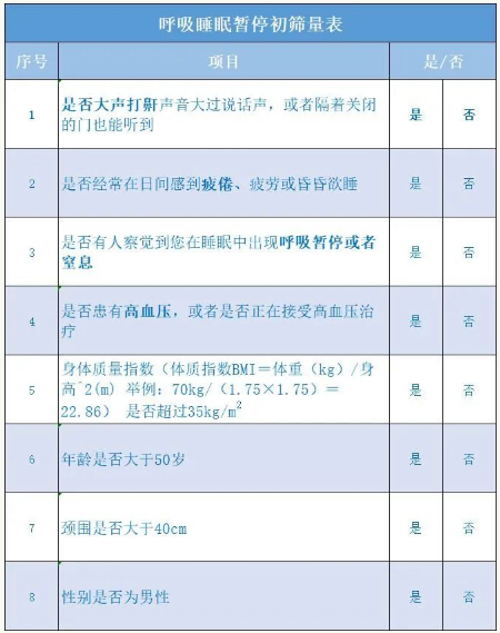 家人觀察打鼾者,呼嚕聲沒(méi)節(jié)奏,不規(guī)律,這種呼嚕不是好呼嚕。我們也可以通過(guò)一些簡(jiǎn)單的量表自測(cè),看是否有這個(gè)疾病的傾向。