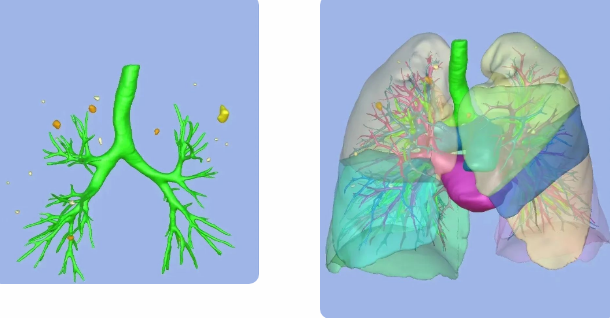 王武平主任介紹,單孔胸腔鏡下精準、微創(chuàng)肺段、亞段及聯合亞段切除術是科室的優(yōu)勢技術和特色手術之一。術前精準識別出肺部磨玻璃惡性結節(jié),并通過軟件行肺結節(jié)、支氣管、肺動脈及靜脈的三維重建,以結節(jié)為中心,勾勒出病灶周圍2cm切緣球,精準規(guī)劃切除范圍和路徑,保證足夠切緣,術中在單孔胸腔鏡下完成肺結節(jié)的精準切除,保證術后快速康復。該技術既實現了早期肺癌的切除治愈,又最大程度的保留了患者的肺功能,是目前國內針對肺磨玻璃結節(jié)早期肺癌先進的外科診療技術之一。