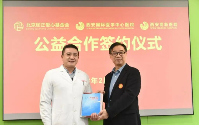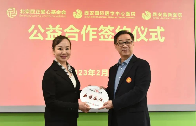 2月14日上午,西安國際醫(yī)學(xué)中心醫(yī)院、西安高新醫(yī)院與北京屈正愛心基金會公益合作簽約儀式在西安國際醫(yī)學(xué)中心醫(yī)院保障樓舉行,北京屈正愛心基金會創(chuàng)始人屈正、理事魏曉輝,國際醫(yī)學(xué)副總裁孫文國,西安國際醫(yī)學(xué)中心醫(yī)院院長尹強(qiáng),西安高新醫(yī)院總經(jīng)理范郁會、院長宋瑛及醫(yī)院相關(guān)部室、??漆t(yī)院負(fù)責(zé)人等出席活動,西安國際醫(yī)學(xué)中心醫(yī)院副院長付強(qiáng)主持儀式。