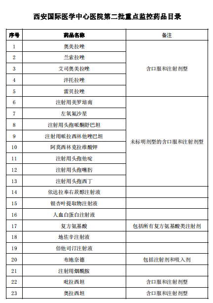 西安國際醫(yī)學(xué)中心醫(yī)院第二批重點監(jiān)控藥品目錄