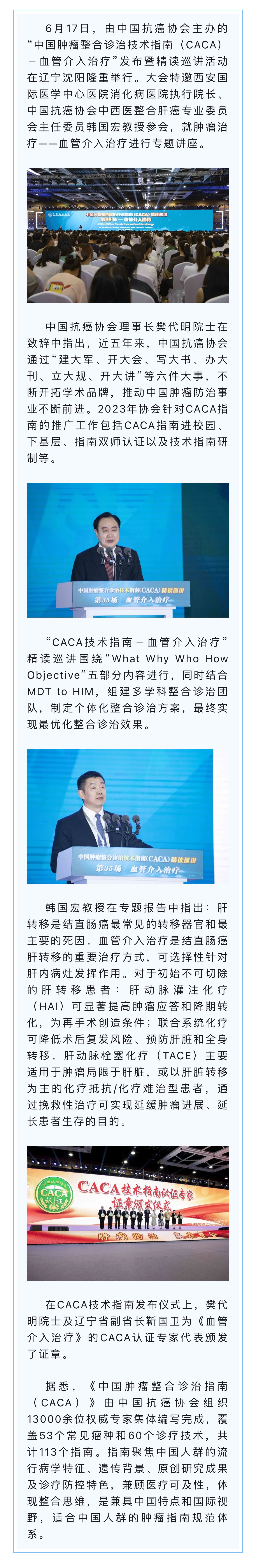 韓國宏教授受邀參加“中國腫瘤整合診治技術(shù)指南(CACA)-血管介入治療”發(fā)布暨精讀巡講活動