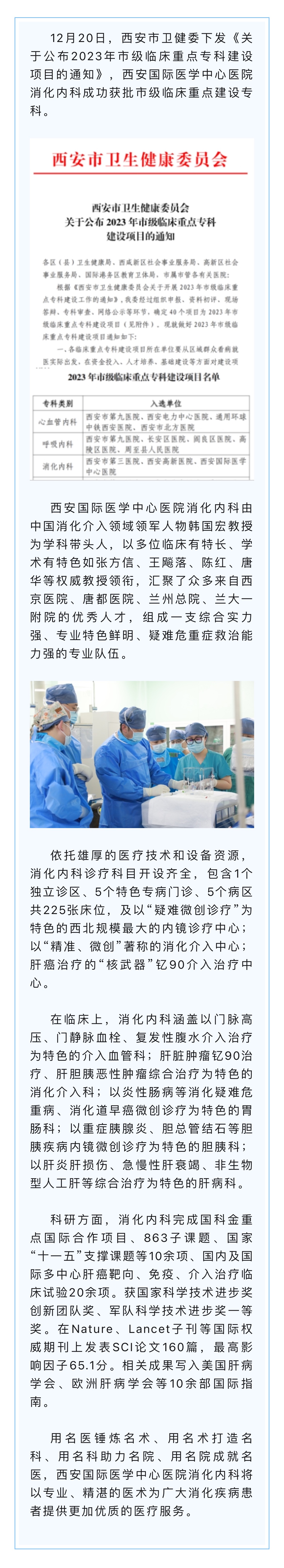 我院消化內(nèi)科成功獲批市級(jí)臨床重點(diǎn)建設(shè)???
