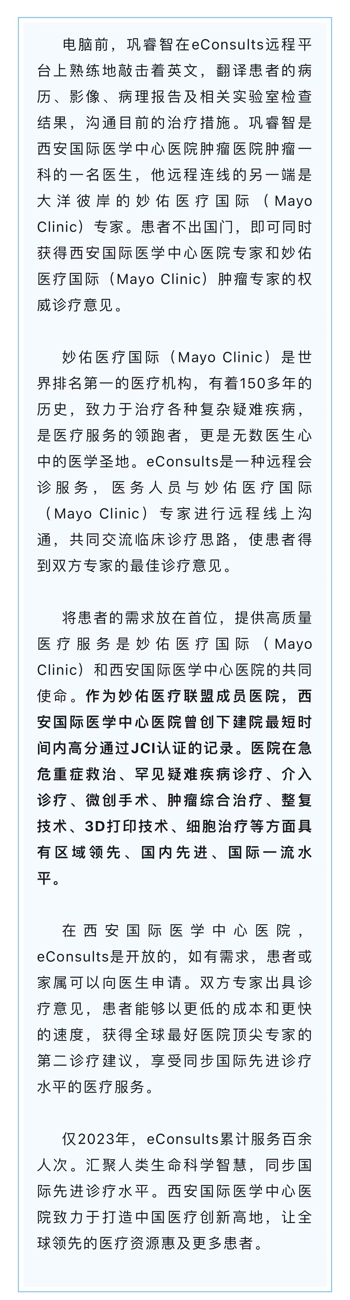 觸手可及!在西安國際醫(yī)學中心醫(yī)院,eConsults讓你不出國門,同步國際先進診療服務