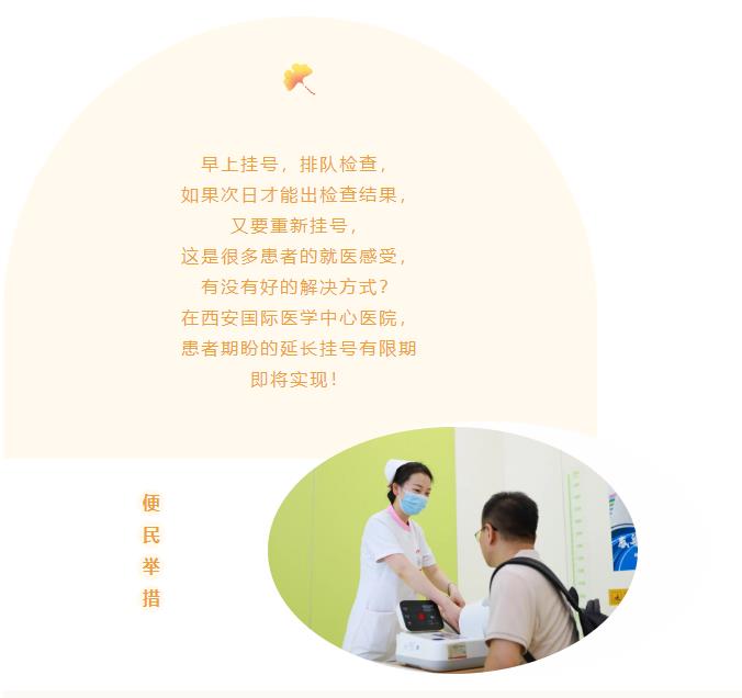 西安國(guó)際醫(yī)學(xué)中心醫(yī)院打破掛號(hào)診療當(dāng)日有效的慣例,創(chuàng)新推出“一次掛號(hào)三天有效”的舉措,進(jìn)一步優(yōu)化門(mén)診服務(wù)流程,降低患者就醫(yī)成本,改善患者就醫(yī)感受。自2023年8月7日起,患者掛號(hào)就診后,如果檢驗(yàn)、CT等輔助檢查結(jié)果當(dāng)天未出,三日內(nèi)再次在同院區(qū)、同專業(yè)就診免收掛號(hào)費(fèi),醫(yī)生免費(fèi)為患者解讀報(bào)告,提供治療建議。