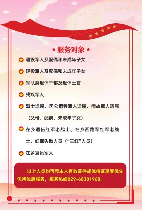 作為“西安市愛國擁軍單位”,西安國際醫(yī)學(xué)中心醫(yī)院于2022年6月21日成立了退役軍人服務(wù)中心,始終響應(yīng)國家針對軍人依法優(yōu)先的相關(guān)政策,推出“優(yōu)先、優(yōu)待、優(yōu)質(zhì)、優(yōu)惠”的“四優(yōu)”政策,對退役軍人等優(yōu)撫對象,提供便捷就醫(yī)。
