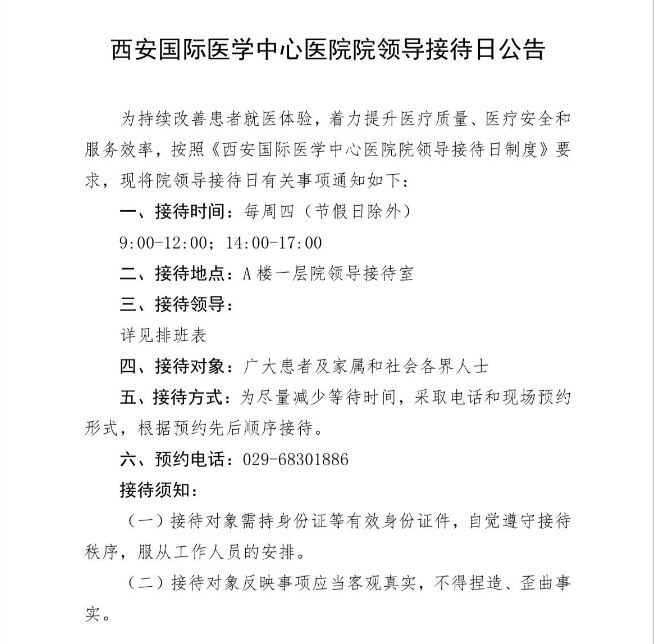 西安國(guó)際醫(yī)學(xué)中心醫(yī)院院領(lǐng)導(dǎo)接待日公告