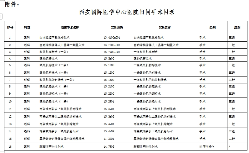 關(guān)于日間手術(shù)目錄更新的通知